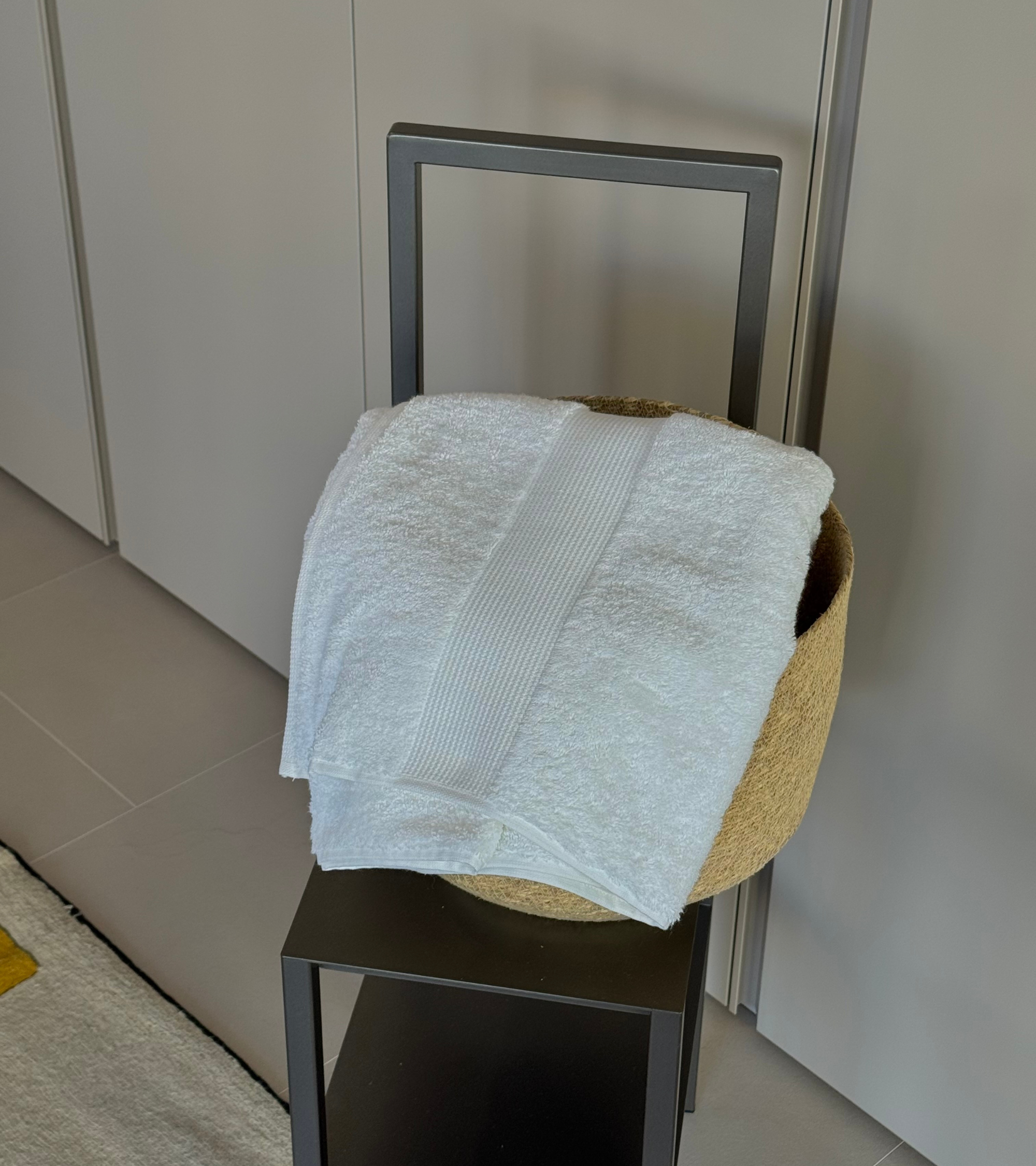 Ha un ricciolo di puro cotone pettinato da 560 g/mq, morbido e soffice grazie ad un procedimento naturale di rigonfiamento.