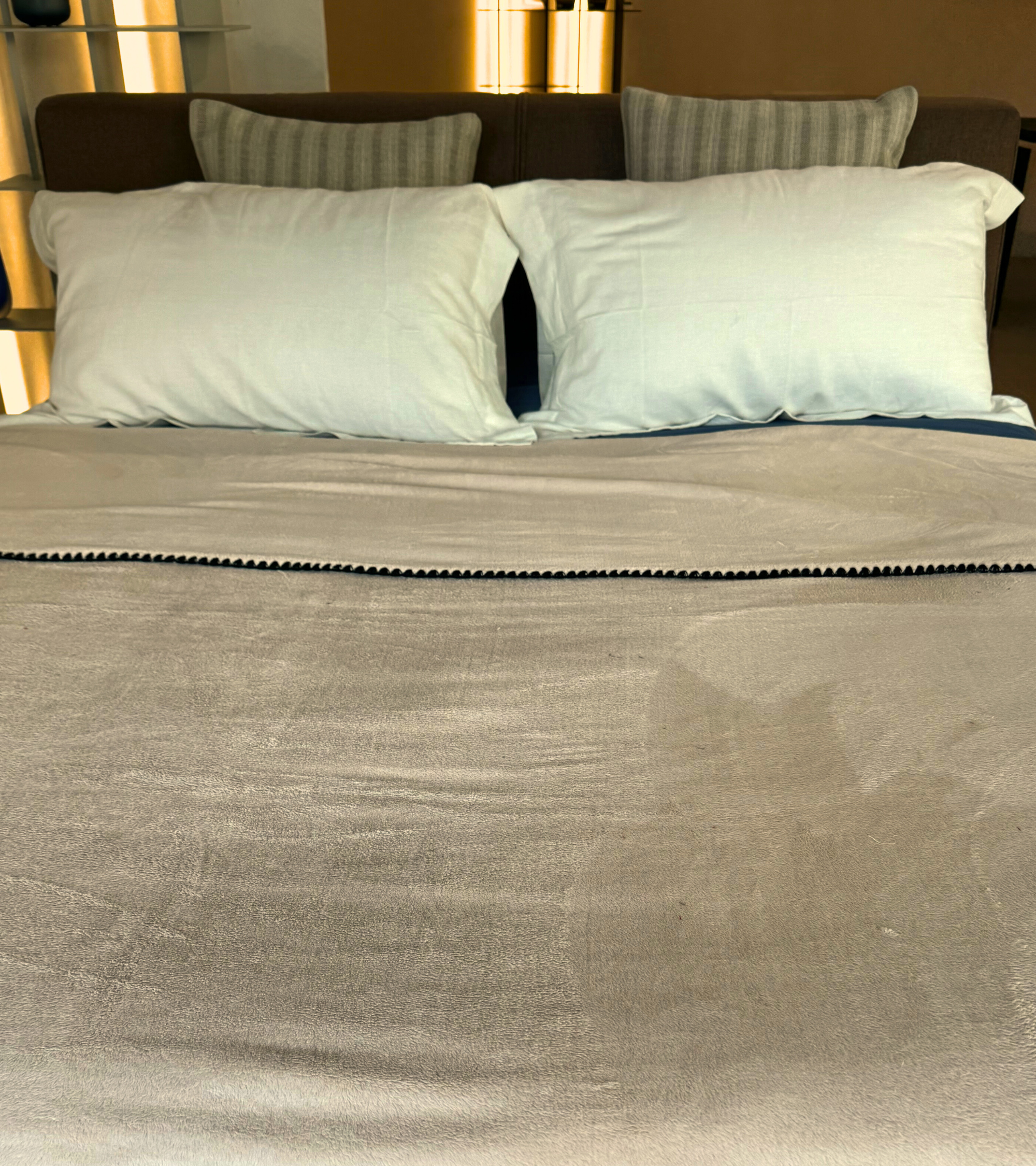 Morbido e caldo plaid in microfibra, realizzato in 100% poliestere.