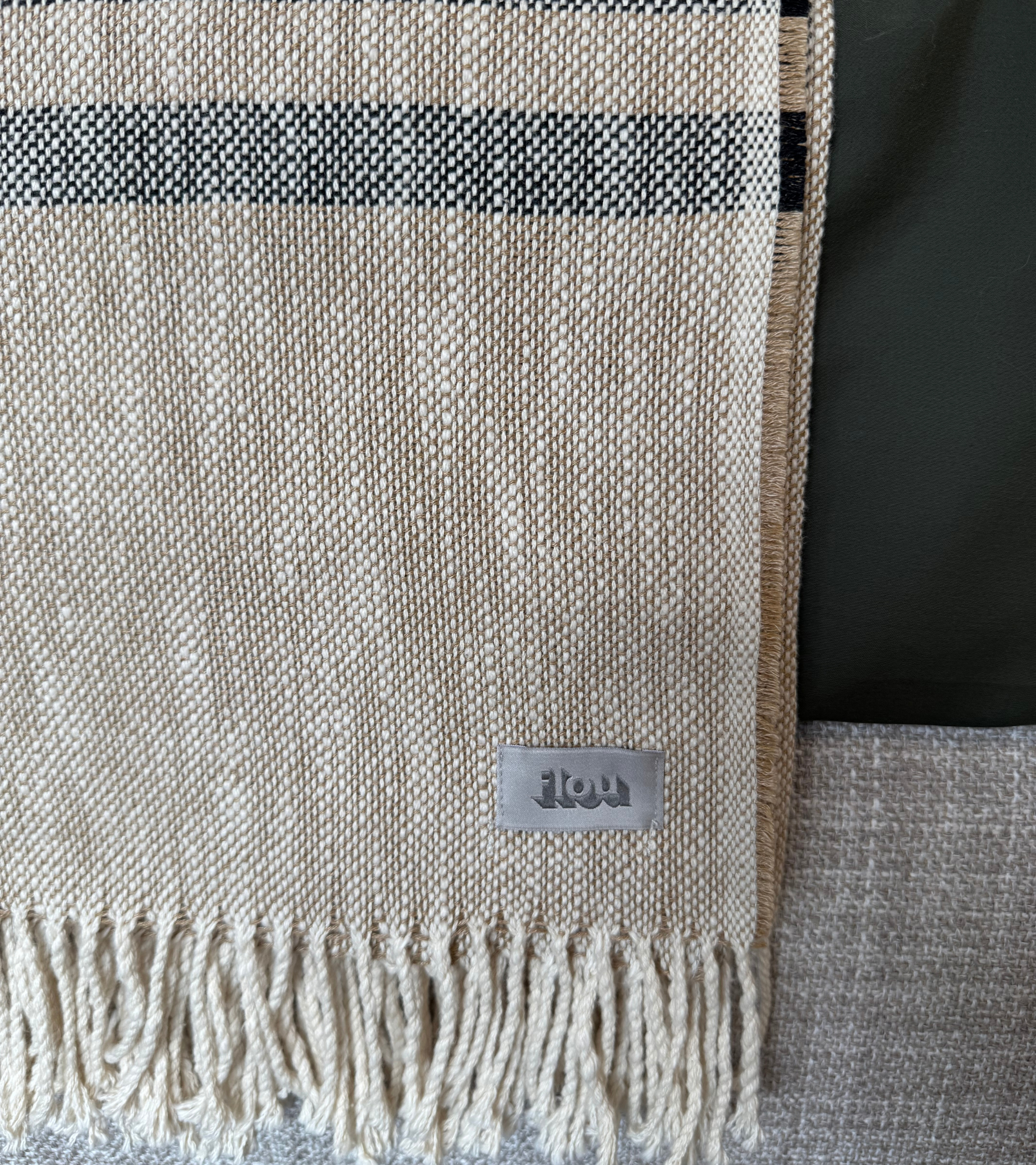 Plaid Lino Rigato Naturale con frange di Flou