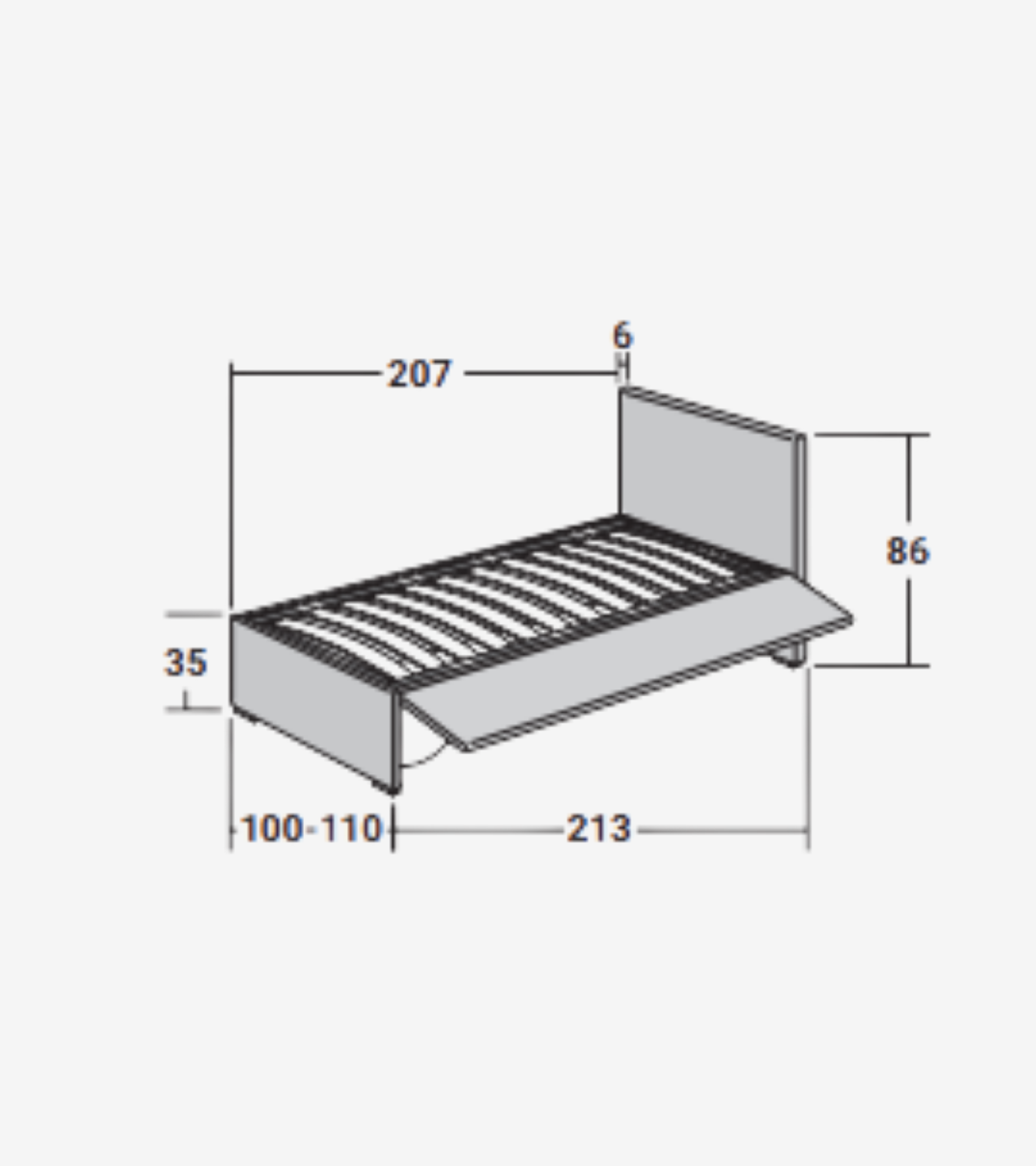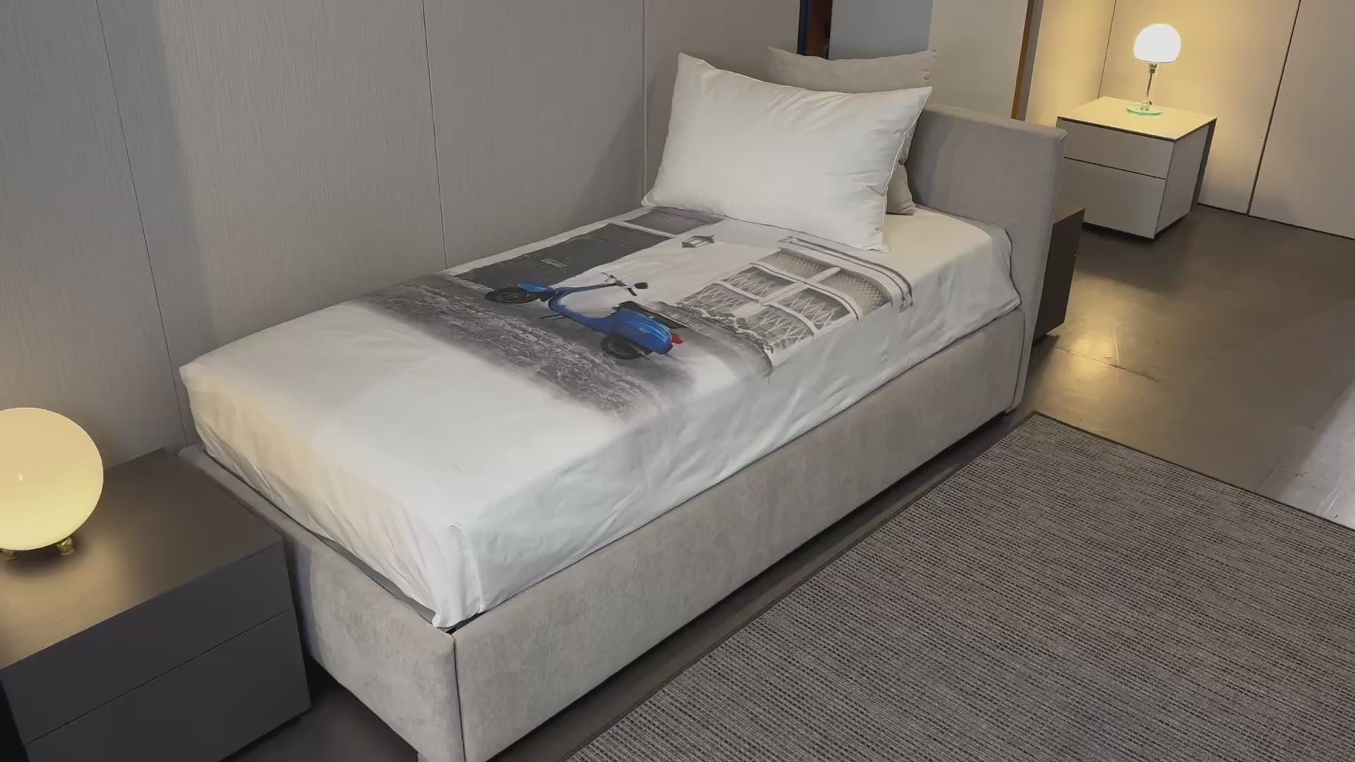 Letto singolo versatile che nasconde sotto la base un secondo letto di servizio.