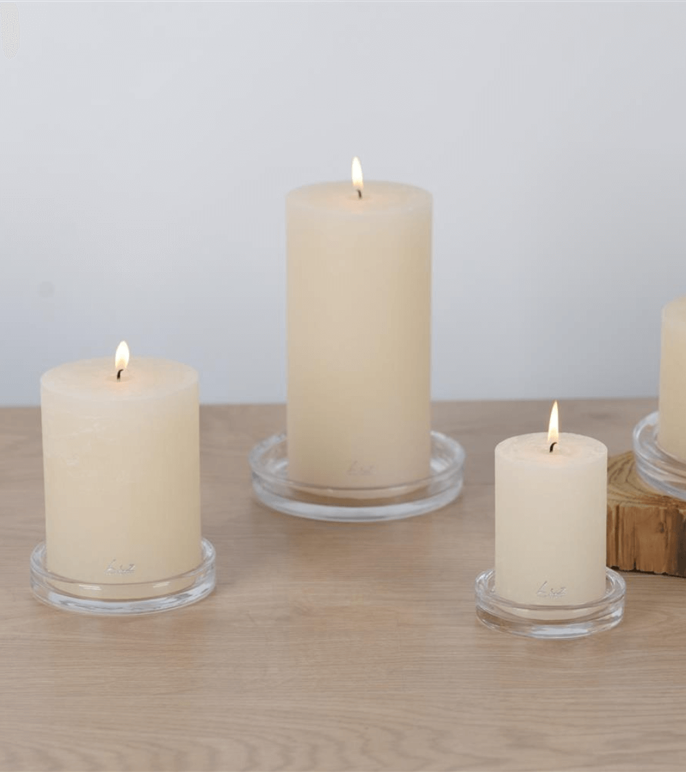 Realizzato in vetro trasparente, il piattino sottocandela è stabile e delicato al tempo stesso.