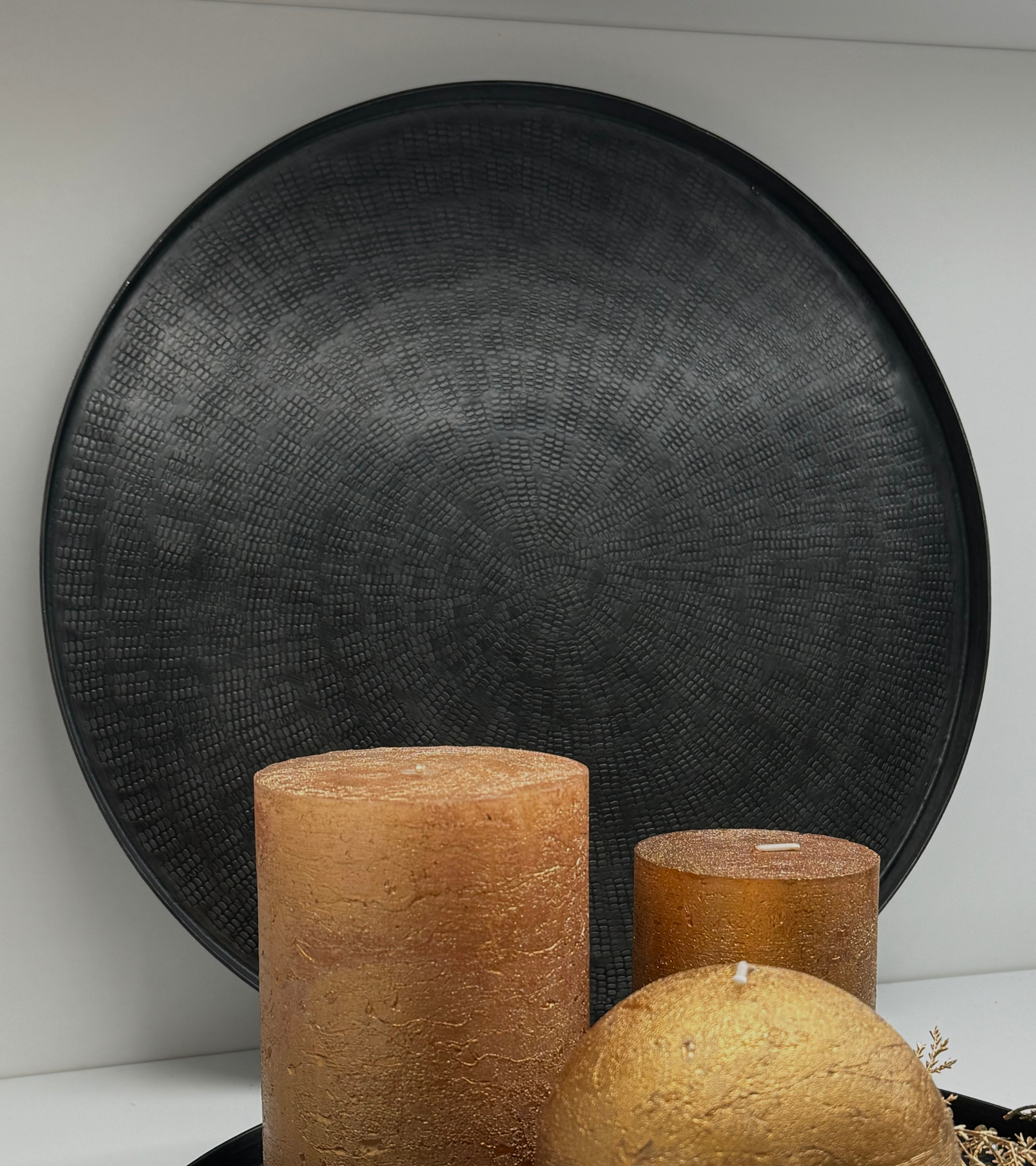 Elegante e versatile, questo piatto portacandele in grafite si distingue per la sua finitura materica e contemporanea. Perfetto per creare composizioni luminose o come base decorativa, dona un tocco di raffinatezza industrial-chic a ogni ambiente. Essenziale, moderno e di grande impatto visivo.