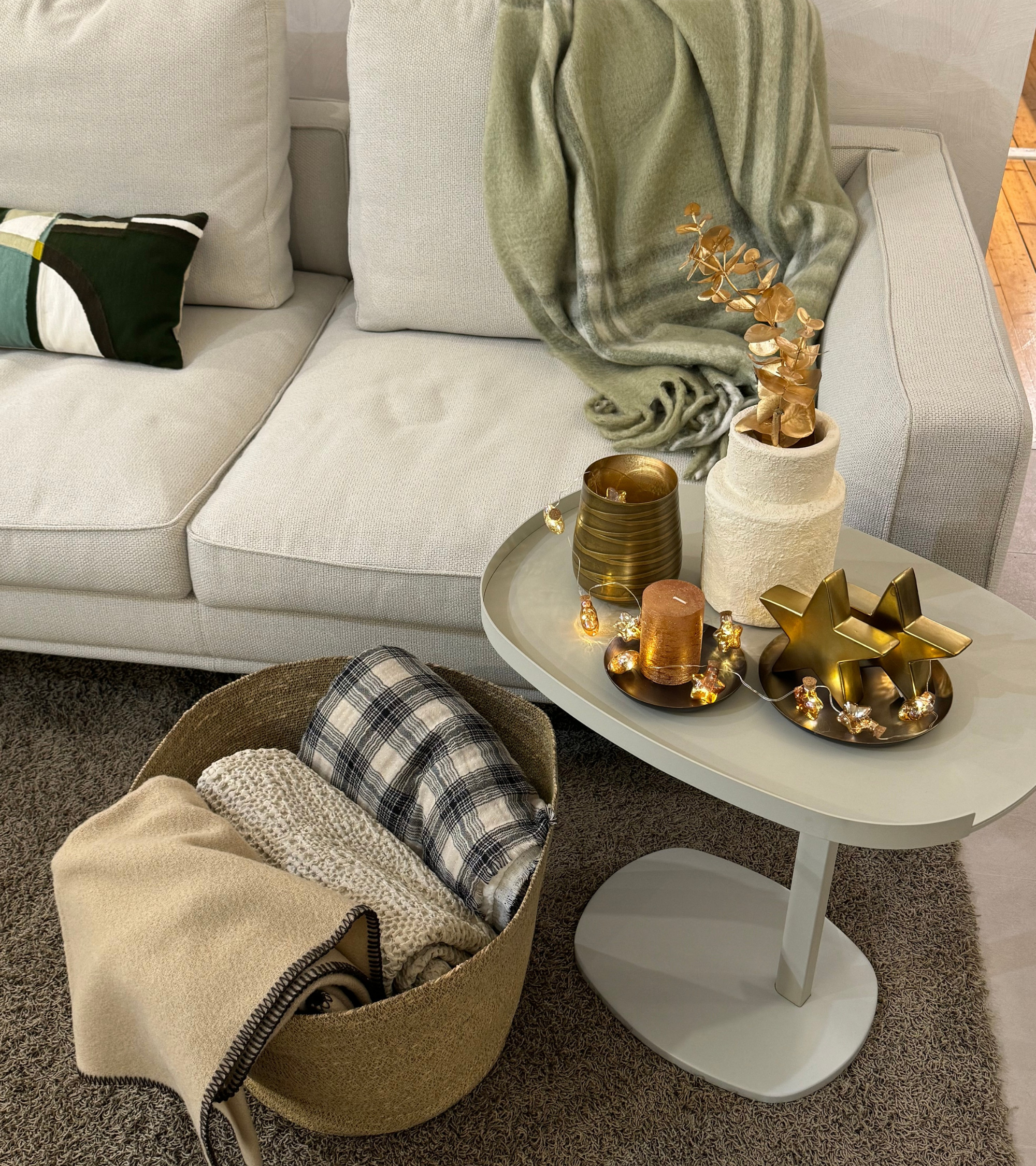 Plaid in 100% cotone garzato con disegno a quadri, colore tortora/bianco latte, doppiato con pelliccia sintetica 100% poliestere colore bianco latte.