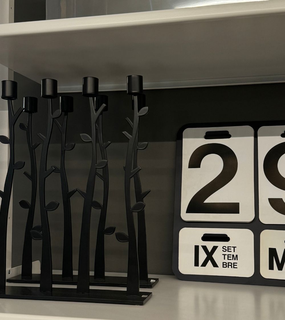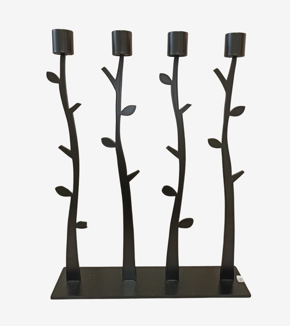 Portacandele da tavolo realizzato in metallo smaltato colore nero.