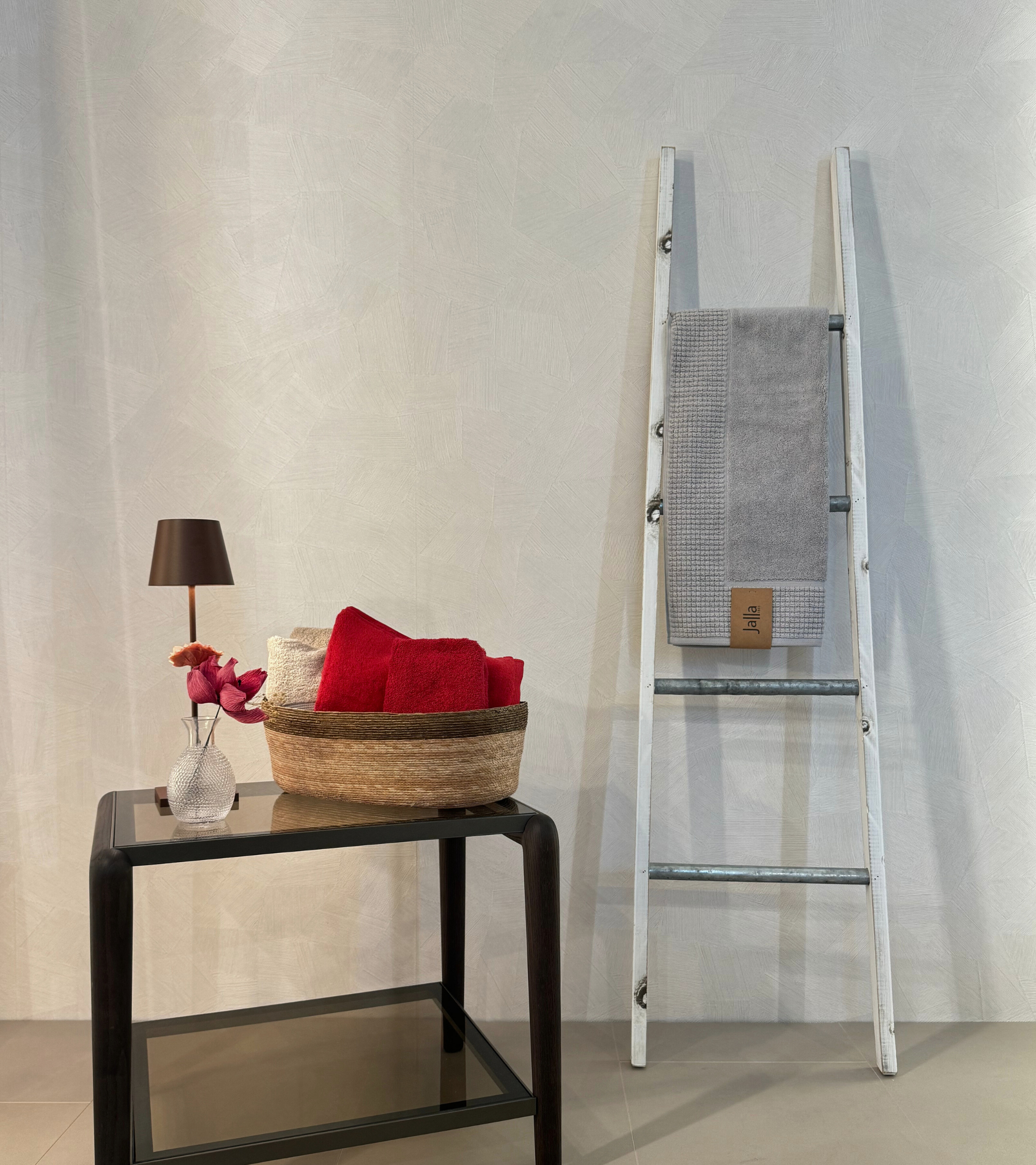 Ha un ricciolo di puro cotone pettinato da 560 g/mq, morbido e soffice grazie ad un procedimento naturale di rigonfiamento.