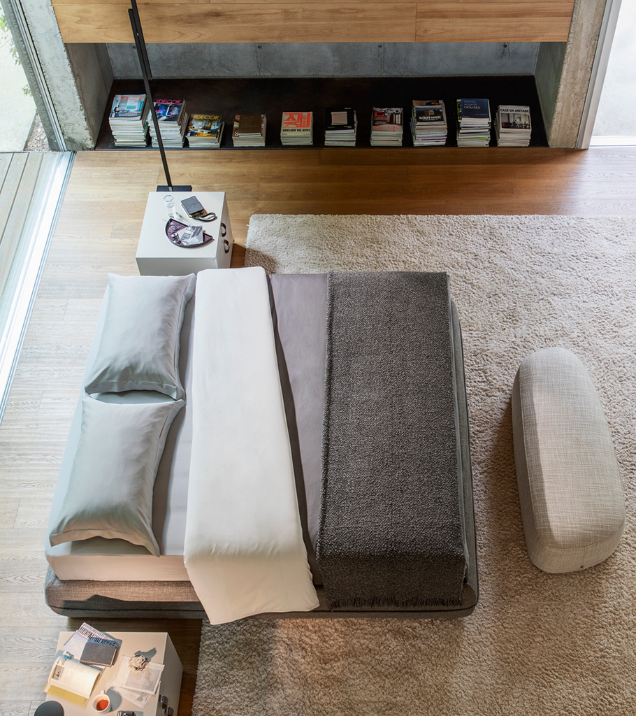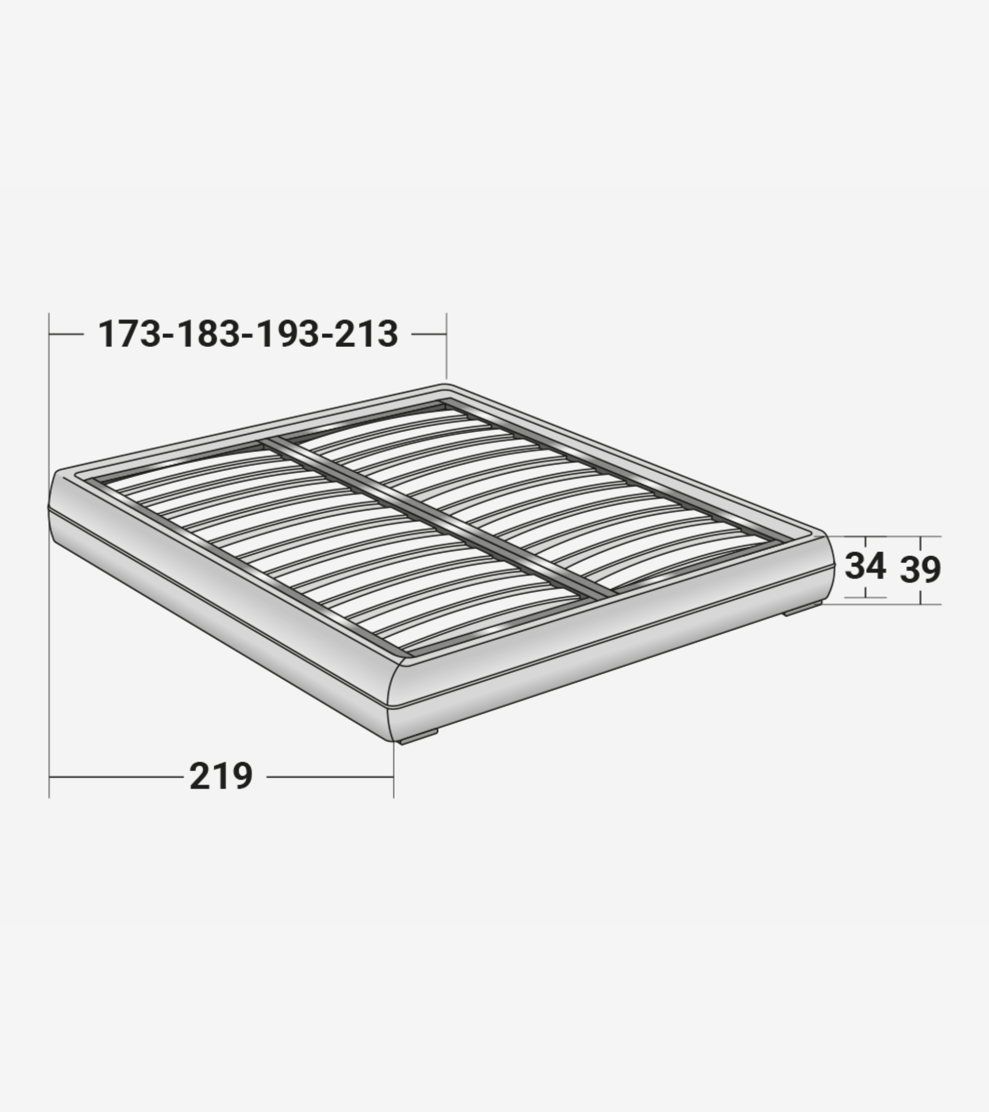 E’ caratterizzato da una cucitura orizzontale a cordonetto lungo tutto il suo perimetro che spezza la percezione della sua notevole altezza: 39 cm da terra, due in più rispetto a sommier e letti tradizionali.