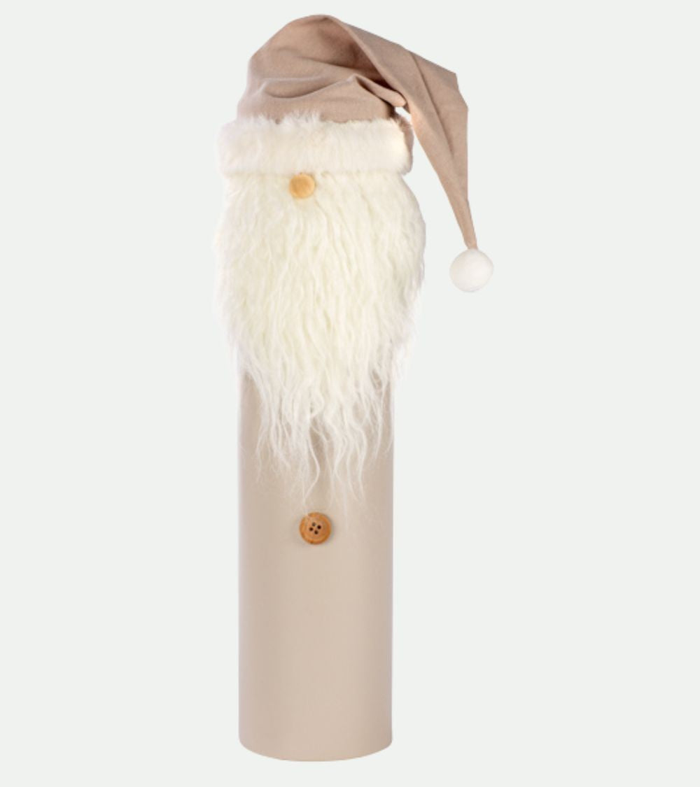 Simpatico porta bottiglie natalizio a forma di Babbo Natale realizzato in cartone. Ideale per decorare la tavola durante le festività natalizie.
