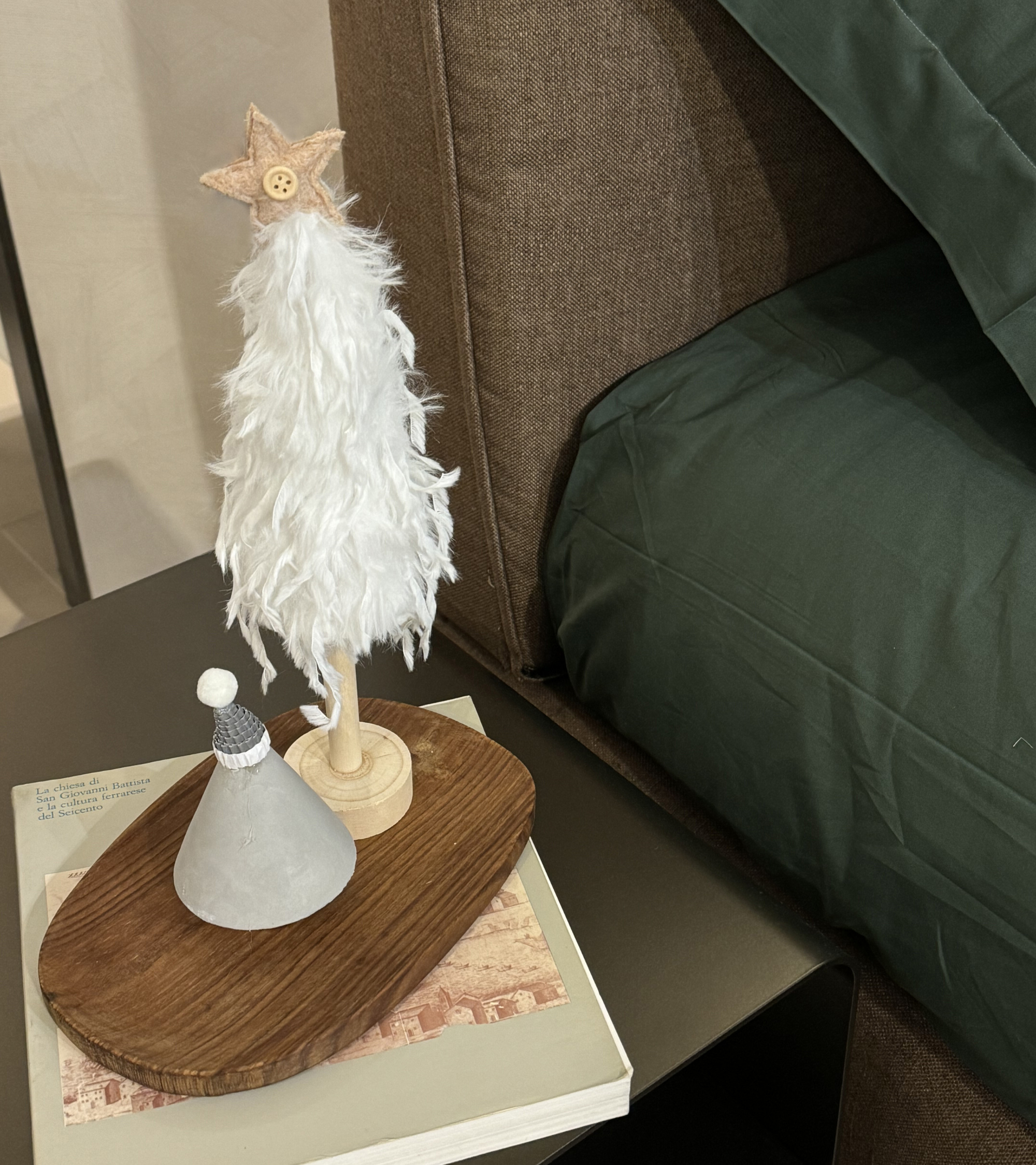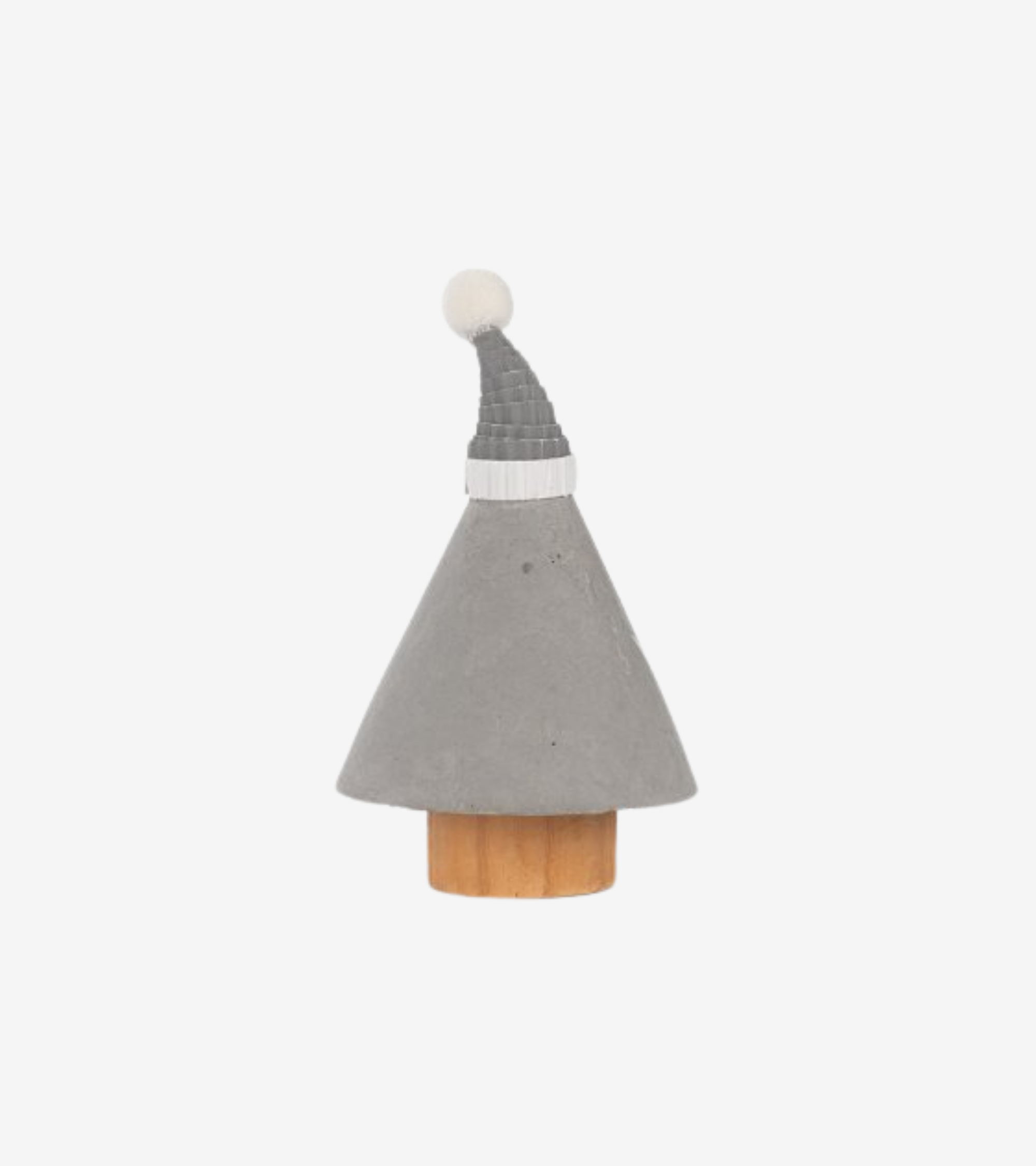 Un delizioso alberello decorativo in cemento grigio con base in legno e cappellino invernale: minimalista, moderno e irresistibilmente chic. Perfetto per aggiungere un tocco di stile nordico alle tue decorazioni natalizie.