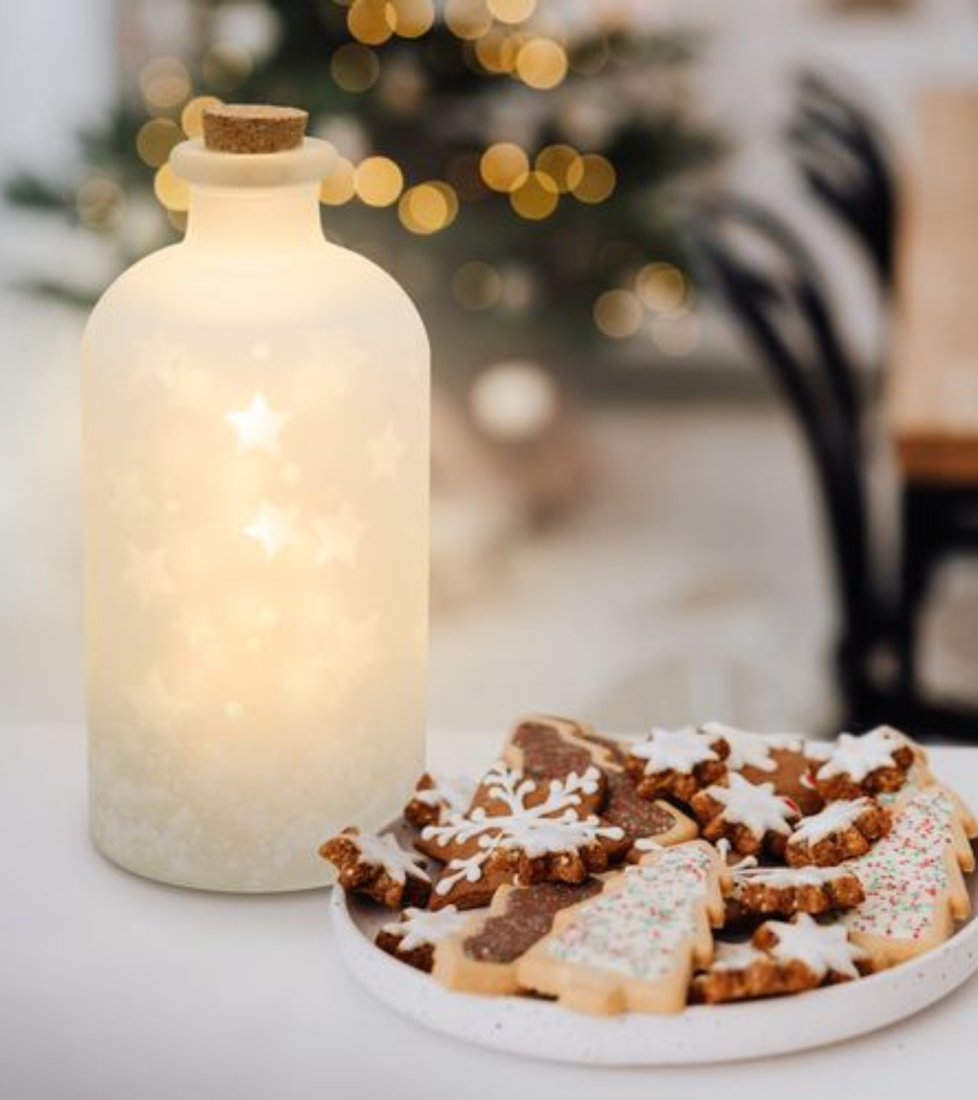 Elegante e magica, questa bottiglia in vetro satinato con stelle diffonde una luce calda e soffusa che crea un’atmosfera incantevole. Perfetta come decorazione natalizia o punto luce d’effetto, aggiunge un tocco di charme e raffinatezza a ogni ambiente. Un piccolo dettaglio luminoso che conquista al primo sguardo!