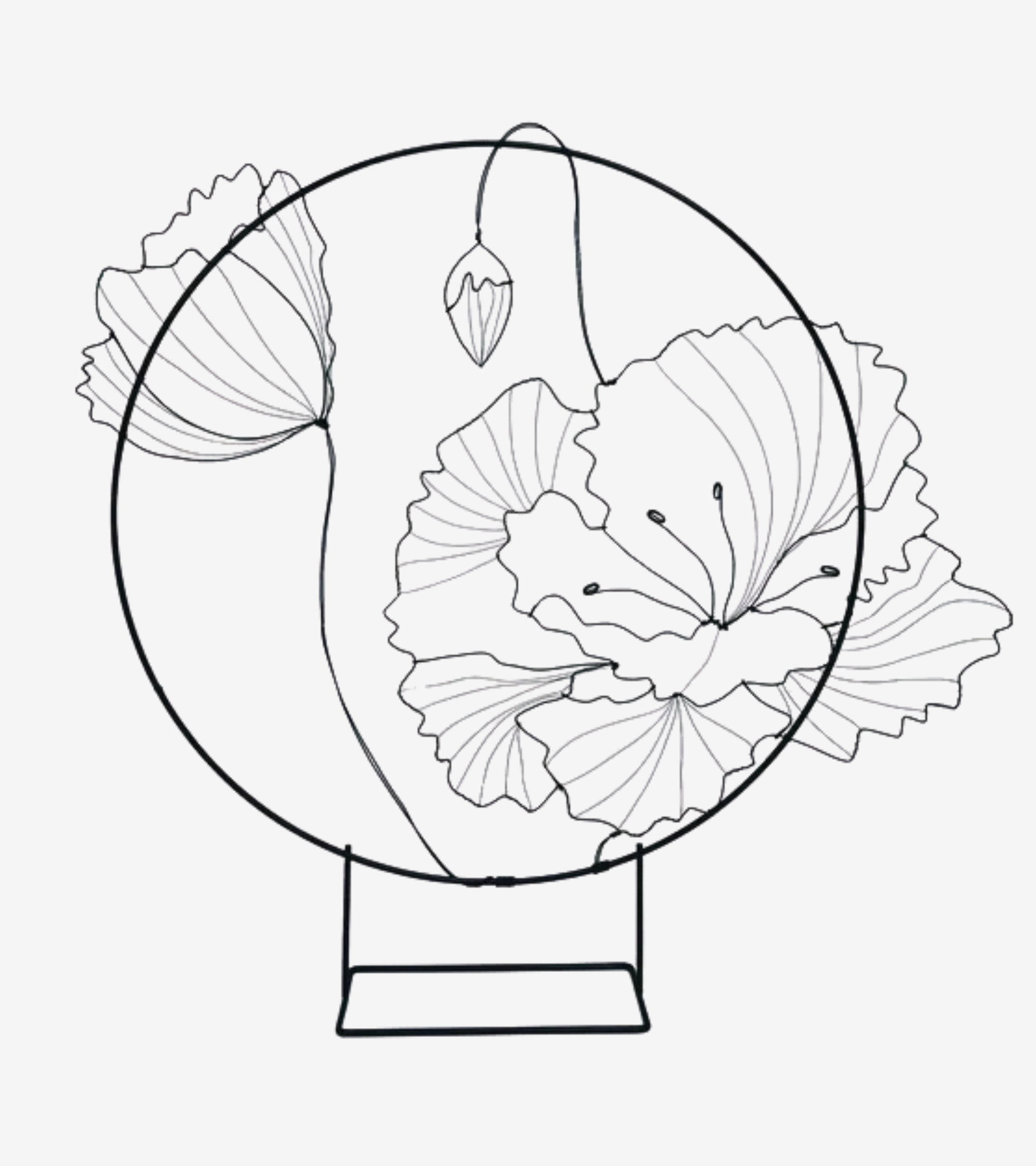 La decorazione papavero 40 cm è una scultura artigianale in filo metallico nero ispirata alla delicatezza e alla vivacità del fiore di papavero. Impreziosisce con naturalezza i vostri interni.