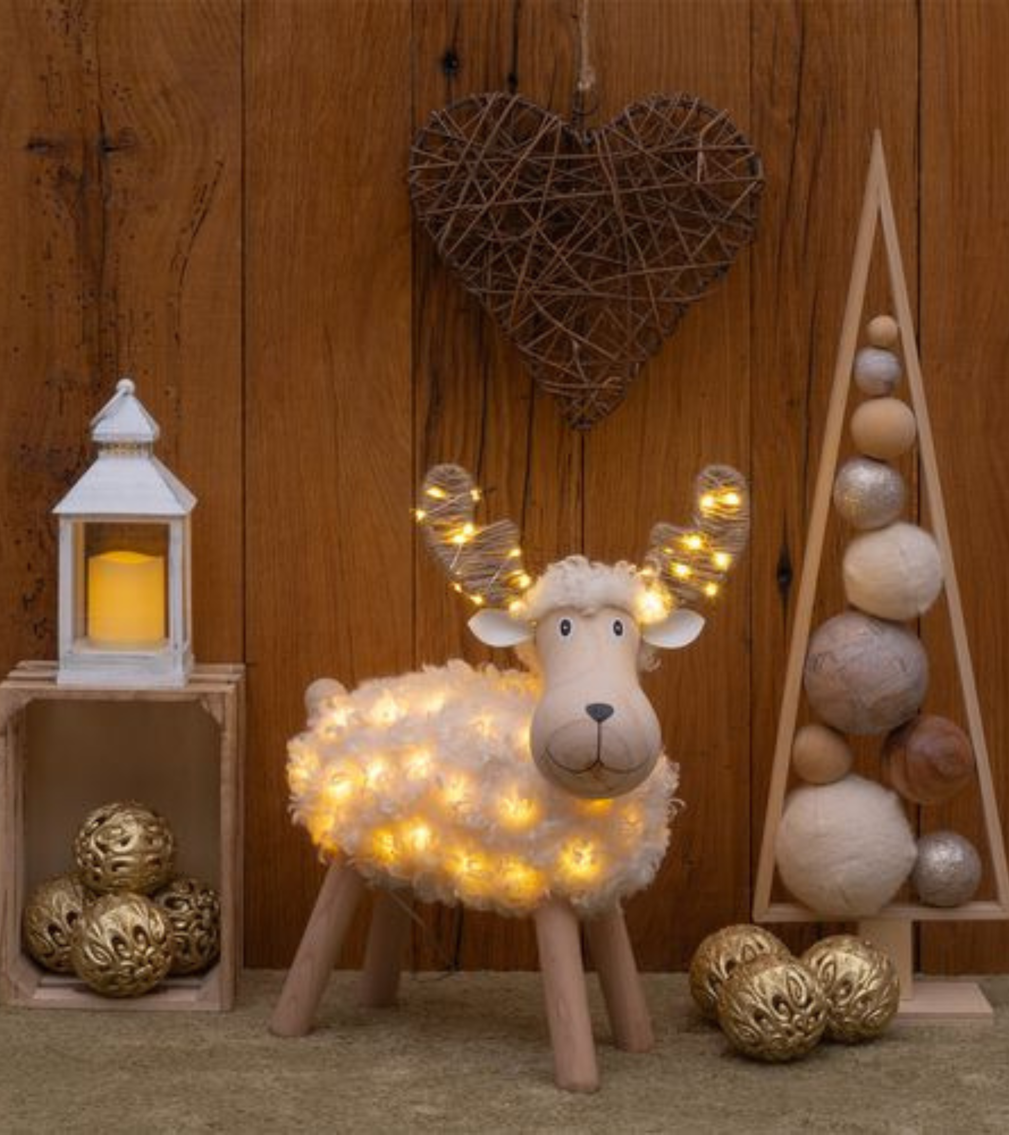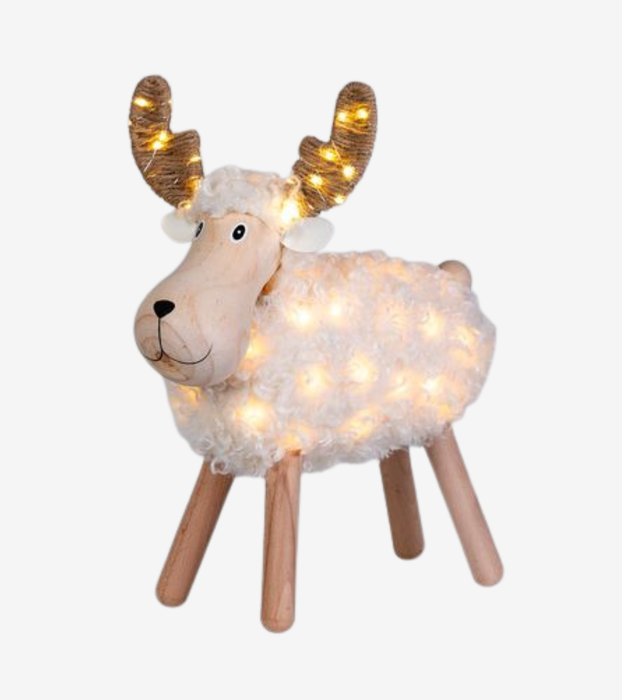 Dolce, simpatica e irresistibilmente natalizia! Questa pecorenna decorativa unisce il calore del legno al soffice manto bianco illuminato da delicate luci LED. Perfetta per creare un’atmosfera magica e gioiosa in casa, è l’elemento ideale per arricchire le tue decorazioni natalizie con un tocco tenero e originale.