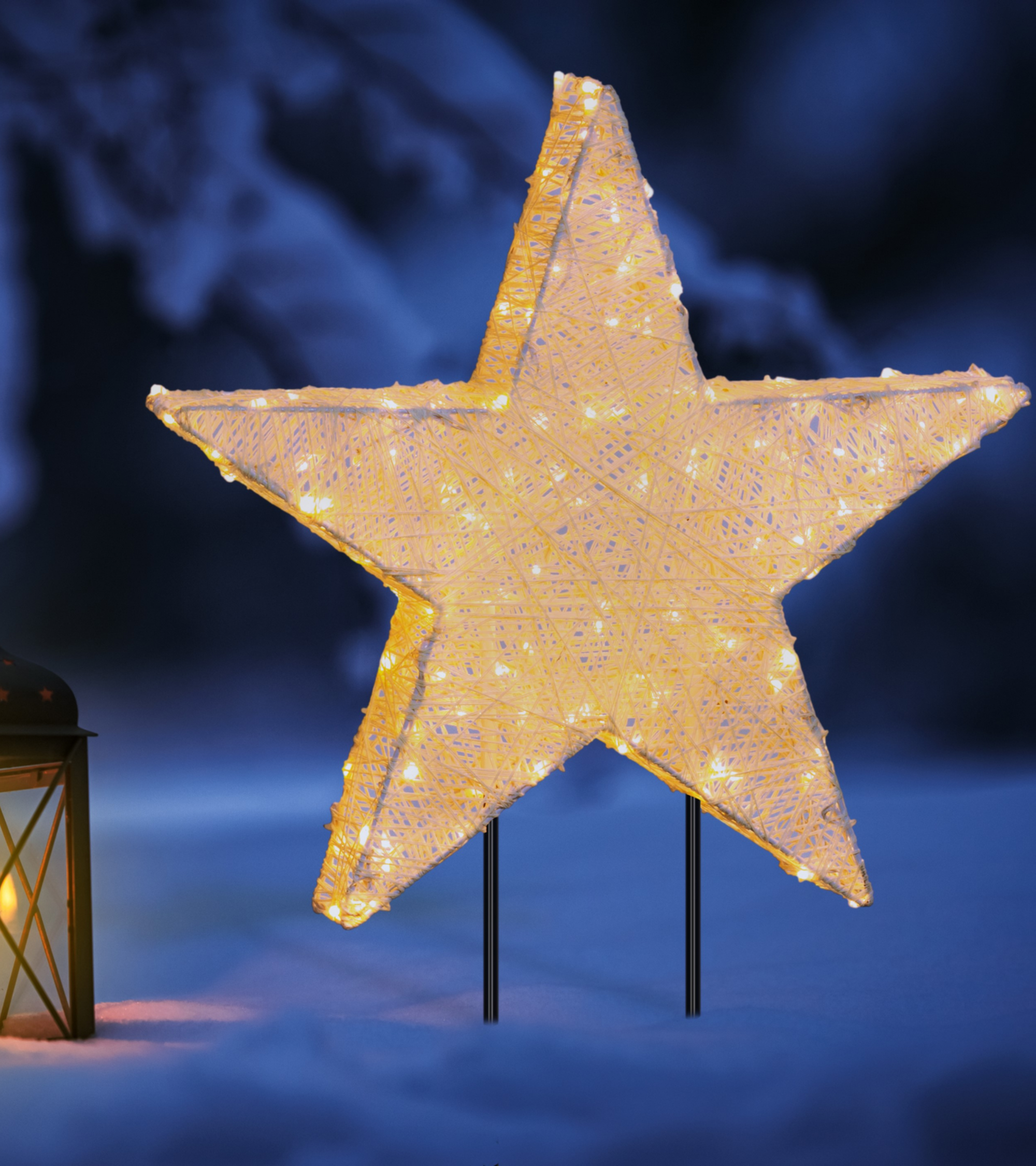Brilla di magia natalizia con questa splendida stella luminosa! Realizzata con intrecci decorativi e illuminata da calde luci LED, è perfetta per essere appesa e appoggiata. Un dettaglio scintillante che dona luce, calore e fascino a ogni ambiente delle feste. Può essere utilizzata per decorare sia l'esterno che l'interno della propria casa.