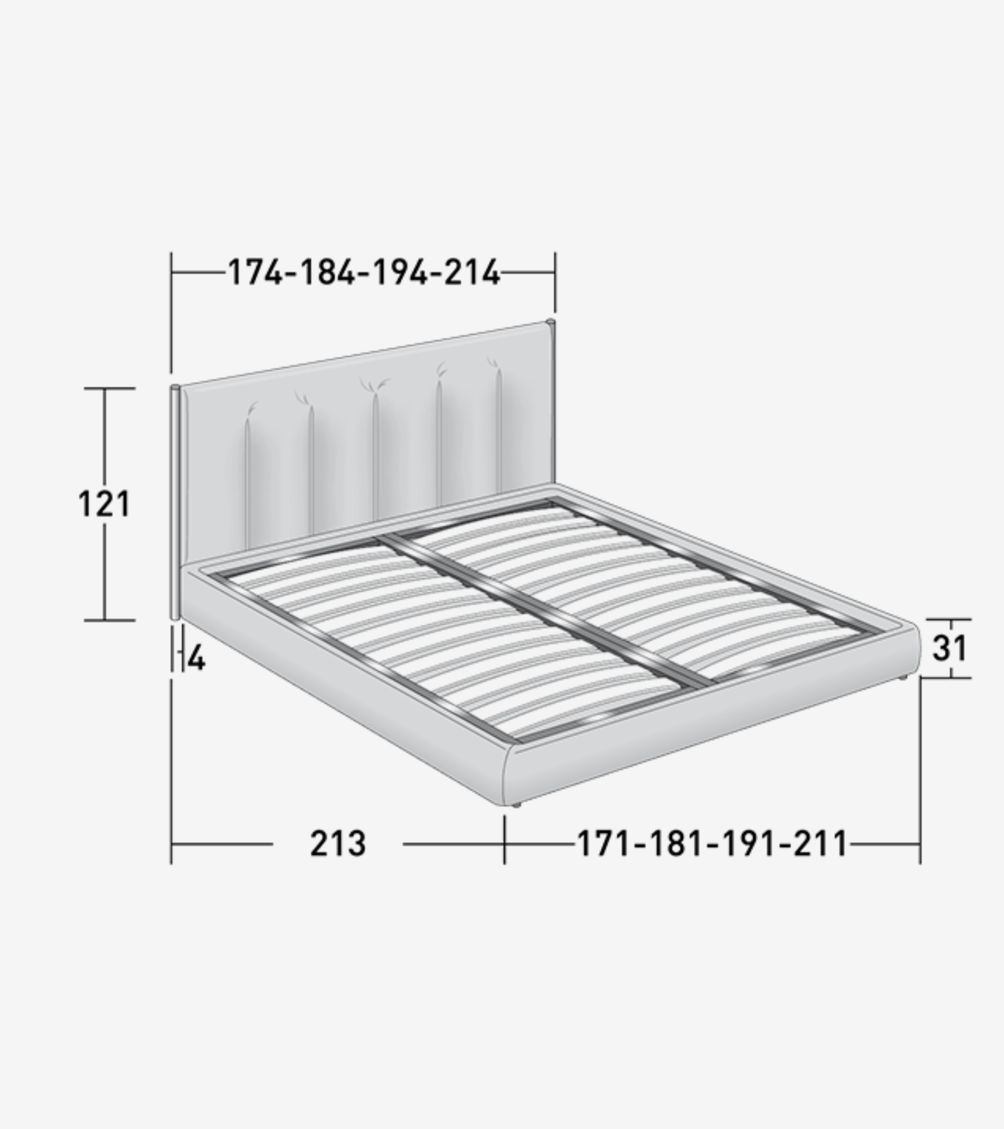 Disponibile in versione matrimoniale, con base fissa, base contenitore, base con movimento elettrico e base Leonardo.