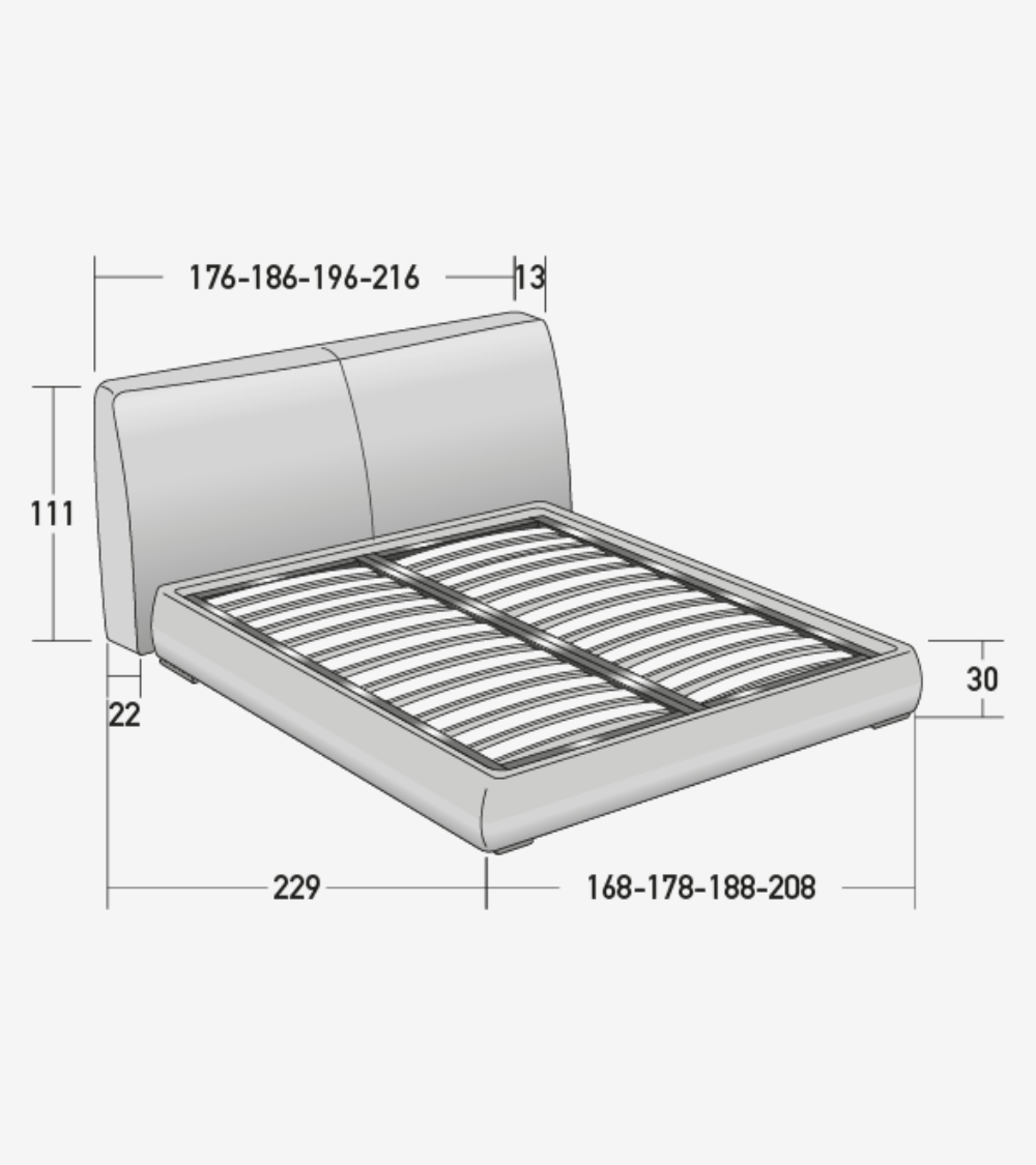 Un letto dalle proporzioni studiate nel dettaglio e perfetto per essere completato da materassi di altezza importante.