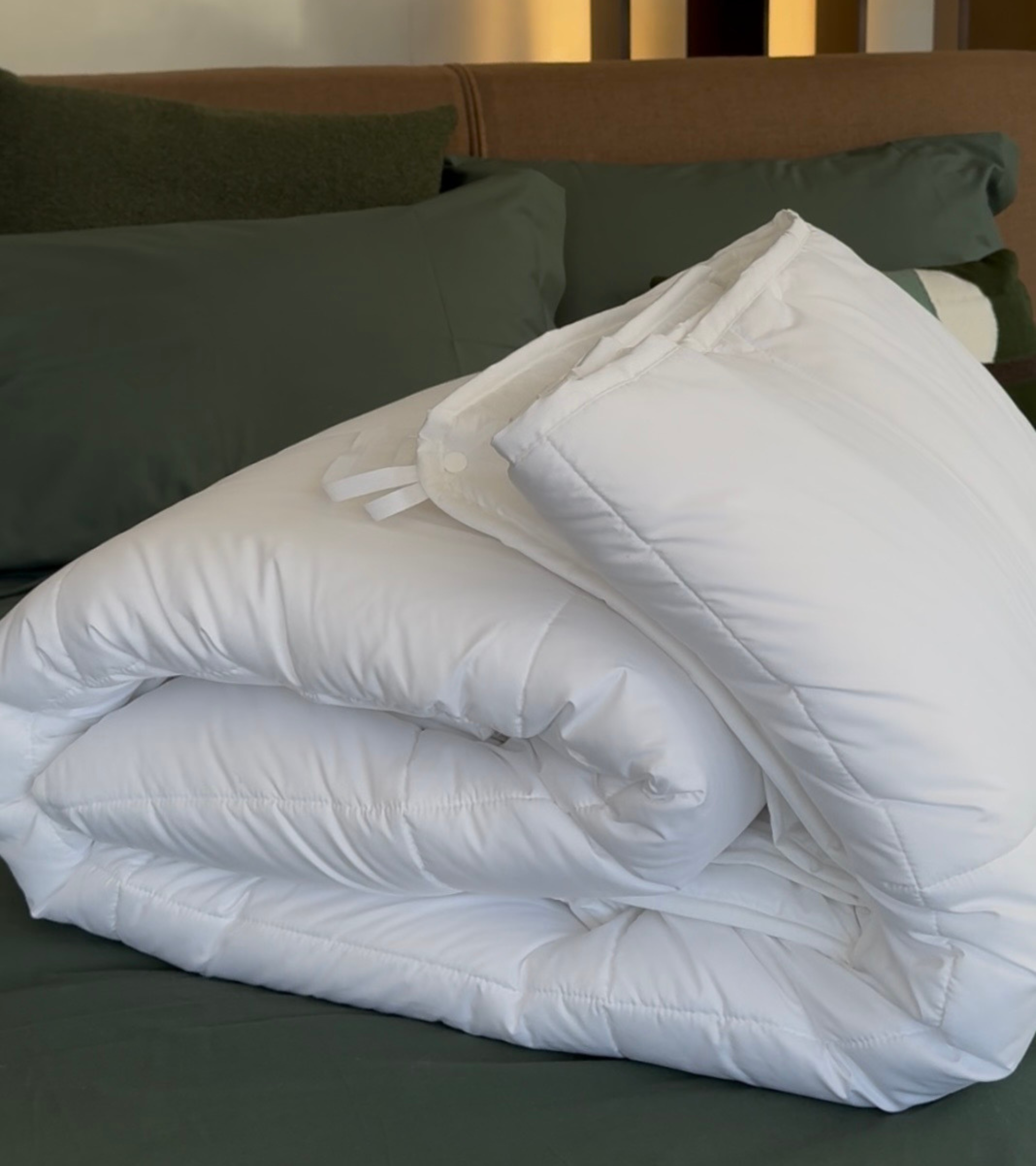 Questa versione è ottenuta dall'accoppiamento di 2 piumini di peso diverso, per offrire una temperatura appropriata e personalizzabile in ogni periodo dell'anno.
